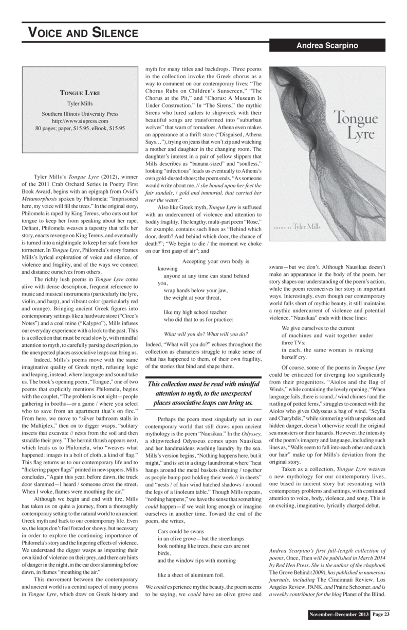 Many thanks to Andrea Scarpino for reviewing Tongue Lyre for American Book Review.
