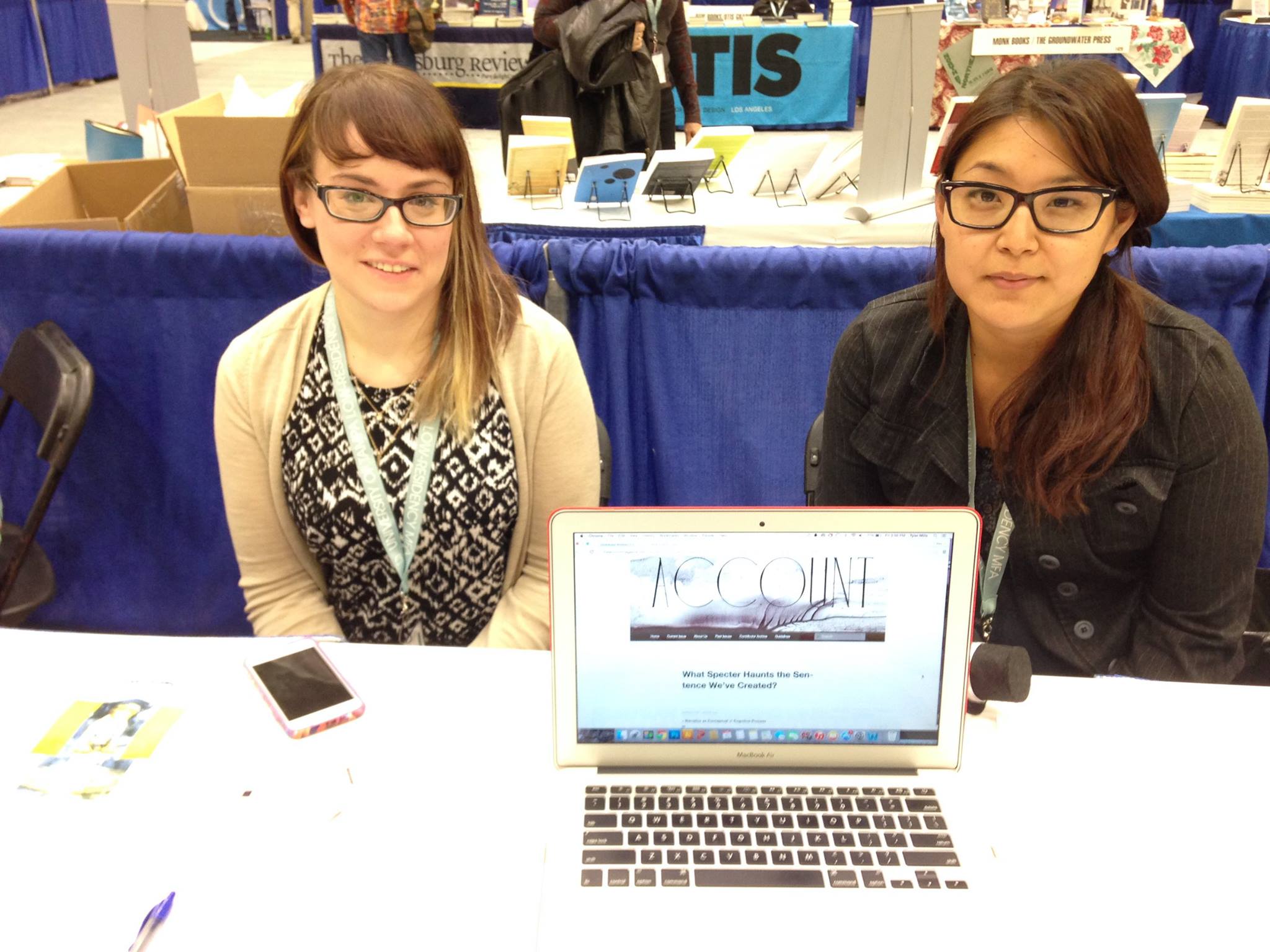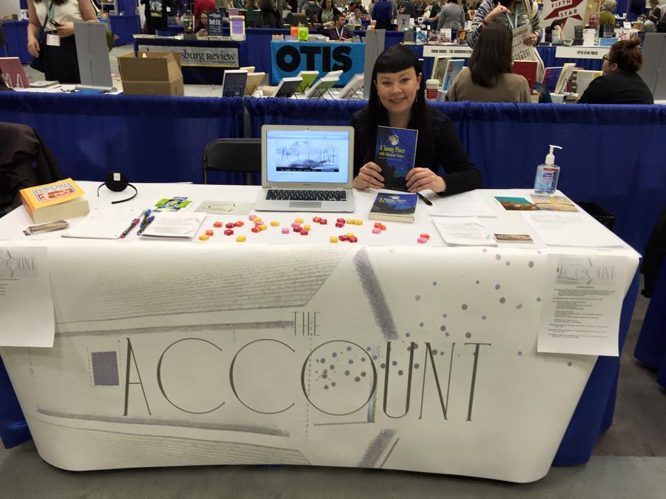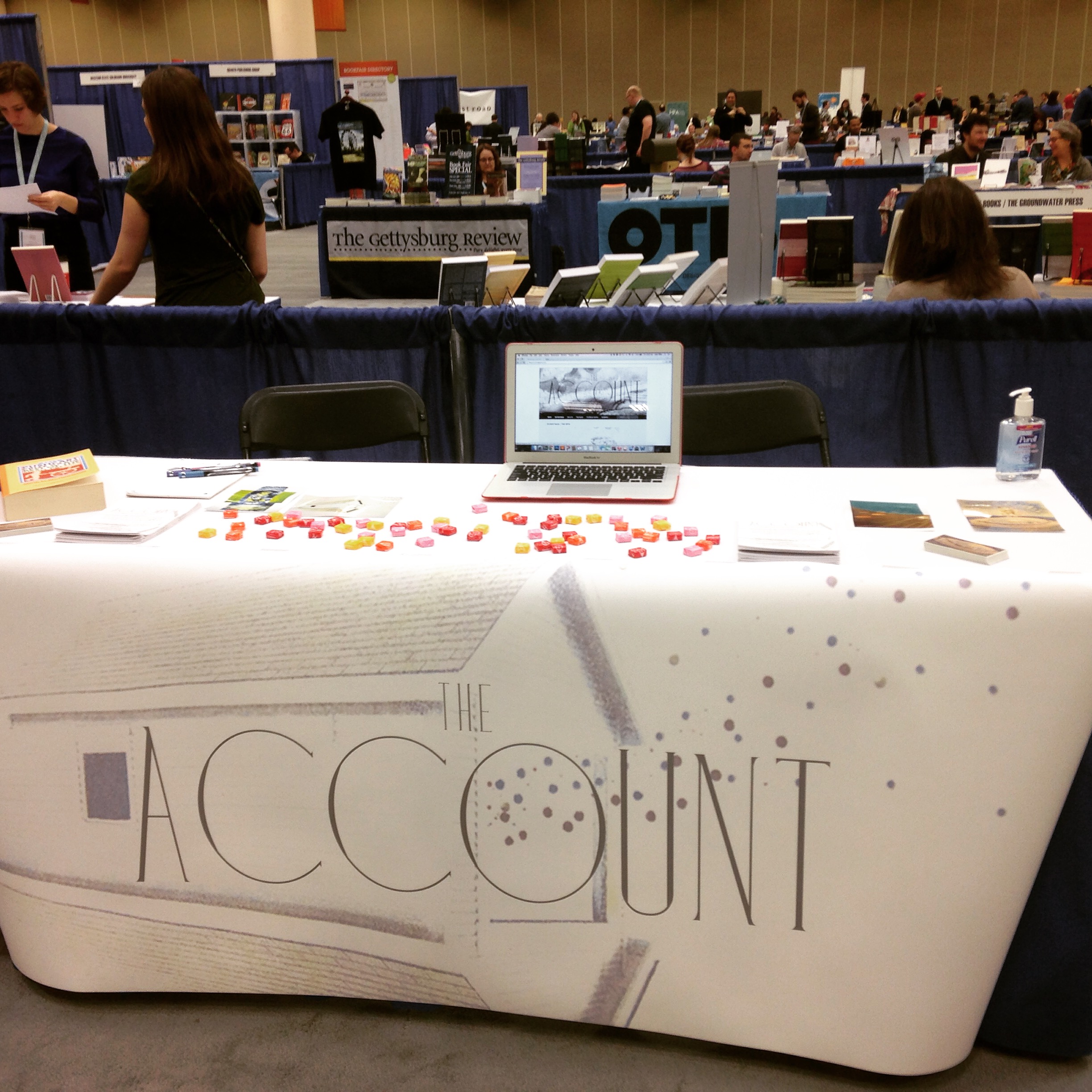 The Account: A Journal of Poetry, Prose, and Thought was at AWP! Entropy mentioned us in their “little guide of places you may want to stop at on your literary journey” at the AWP ’15 book fair. Many of our contributors stopped by our table, the palindrome 1331. Here are some photographs from the conference. See you next year in LA!